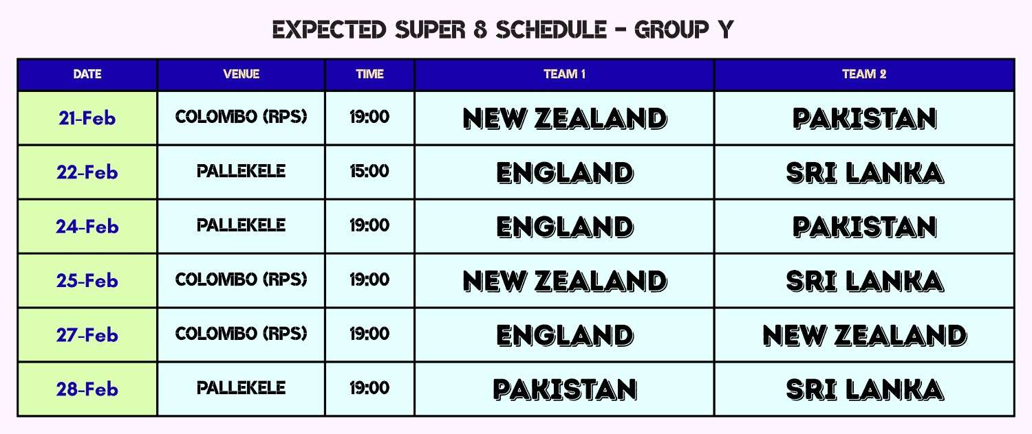 EXPECTED SUPER 8 SCHEDULE - GROUP Y